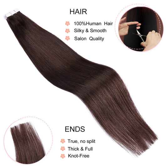DIYOMO Invisible Tape in Hair Extensions Human Hair,#2 Dark Brown Hair Extensions Handcrafted Soft & Smooth Remy Hair Extensions for Women,2.5g/Pcs 50g/Pack
